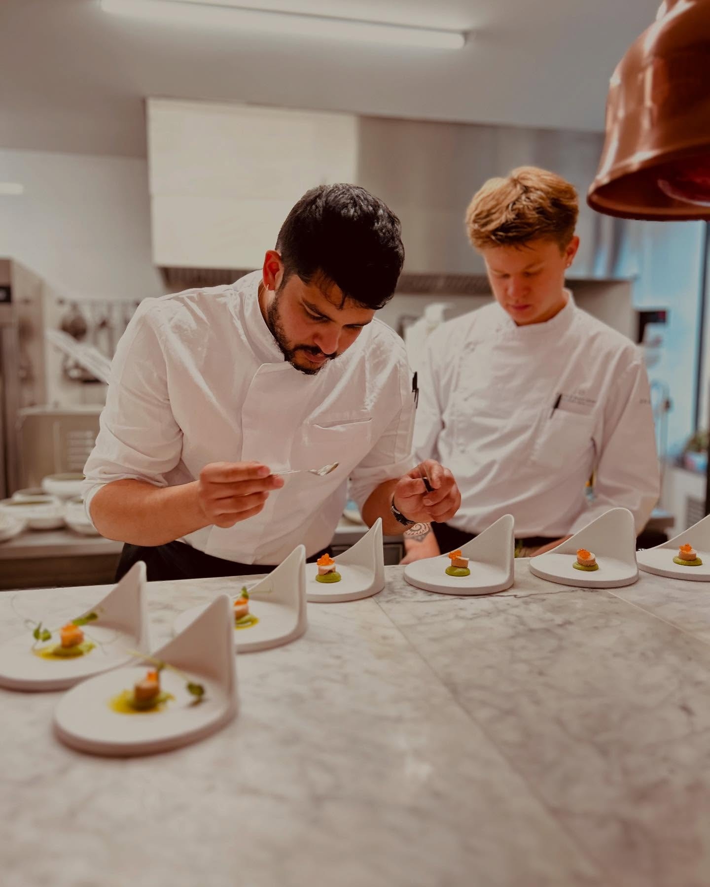 Deux chefs, une vision : celle d’une cuisine contemporaine, sincère et maîtrisée. Nat et Arnaud signent des assiettes où chaque détail compte, chaque saveur à sa place. Un duo complice au service d’une gastronomie vivante et exigeante.