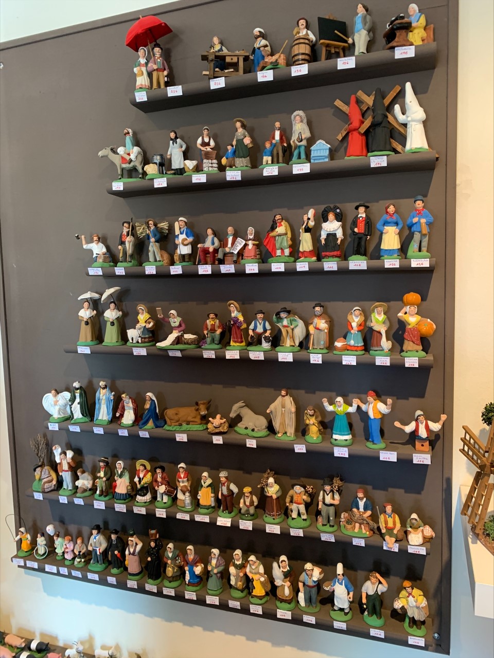 Santons habillés 30 cm Santons peints 7 cm, 5 cm Santons à peindre À découvrir aussi toute une gamme d’éléments de décor (étables, ponts, fontaines…) et d’accessoires (arbres, lavandes, tonneaux…) Stéphane Campana peut également réaliser un santon personnalisé de 30 cm à partir d’une photographie.