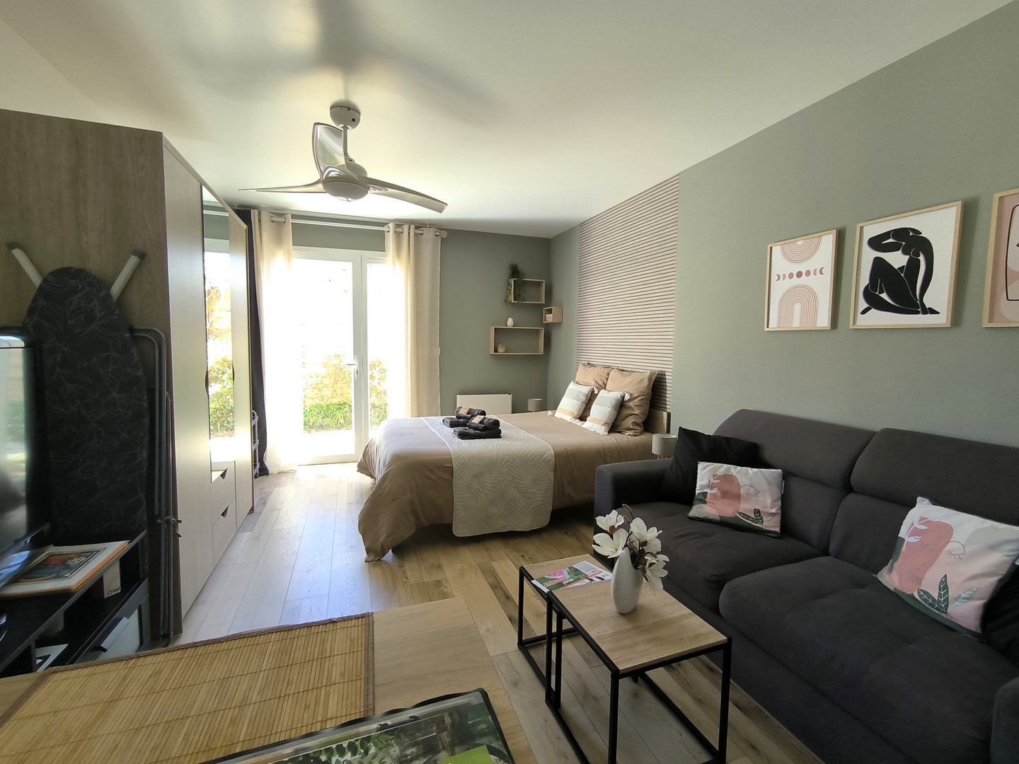 Le studio Les Treilles de Salies, se situe à quelques minutes du centre ville et des thermes de Salies-de-Béarn. Aménagé et décoré avec beaucoup de goût par Marie-Noëlle, la propriétaire, l'endroit est idéal pour venir vous ressourcer le temps d'une cure, ou pour quelques jours de déconnection. Vous apprécierez le calme de ce quartier et vous pourrez profiter pleinement de la terrasse dans un environnement verdoyant. Votre voiture profitera d'un parking privé. Le petit + : une pause bien être sur votre lieu de résidence, un jaccuzi et un sauna (en option payante).